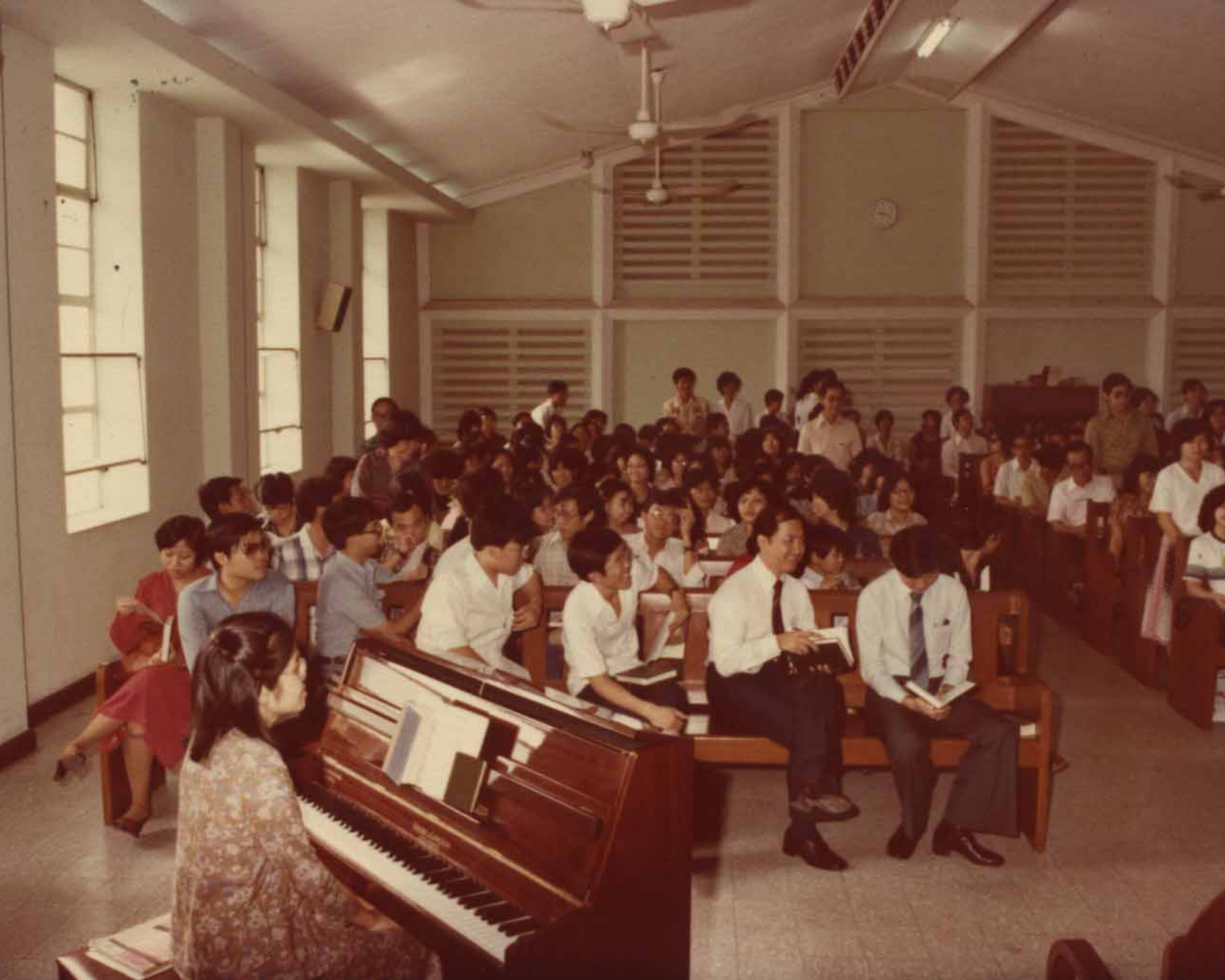 From 1975 to 1976, cell groups and the diaconate structure were introduced in the church, and a second service was started for our Chinese-speaking members.